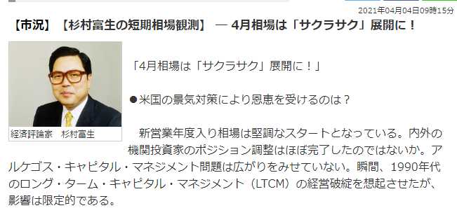 杉村富生氏の4月相場は「サクラサク」展開!!は、外れる公算大