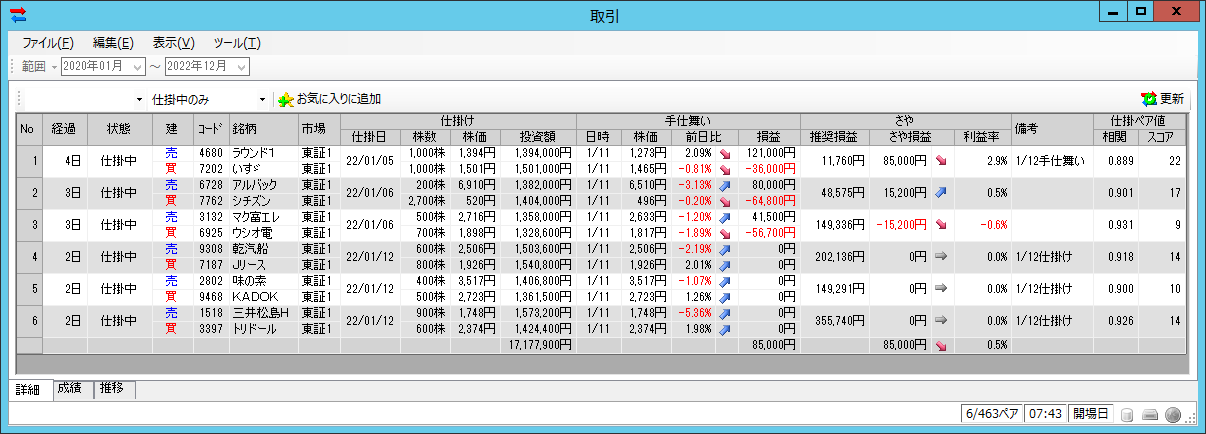 売:1518 三井松島H 900株 買:3397 トリドール 600株