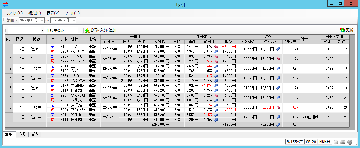 売:4911 資生堂 100株 買:3110 日清紡 200株