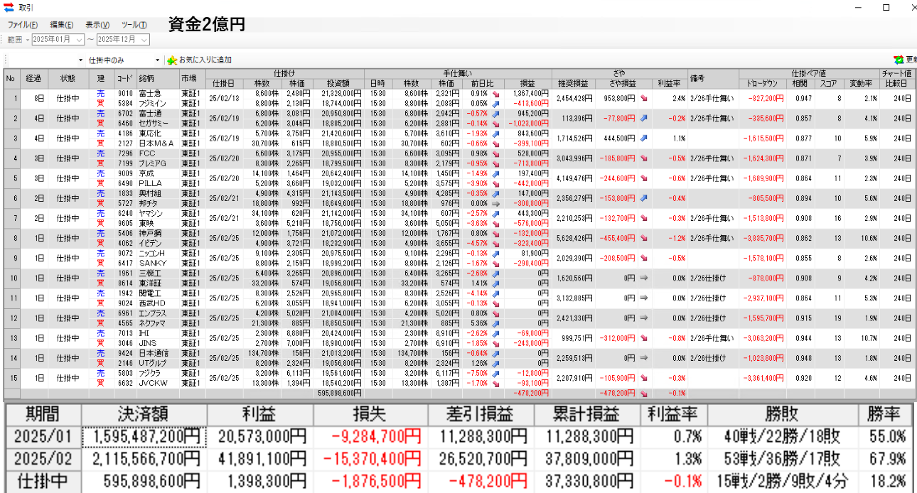 仕掛け及び手仕舞いは、全て翌日の寄付き成行で