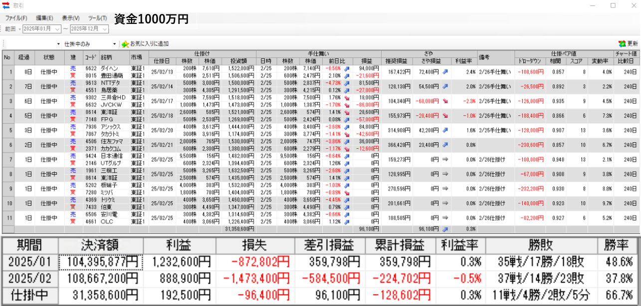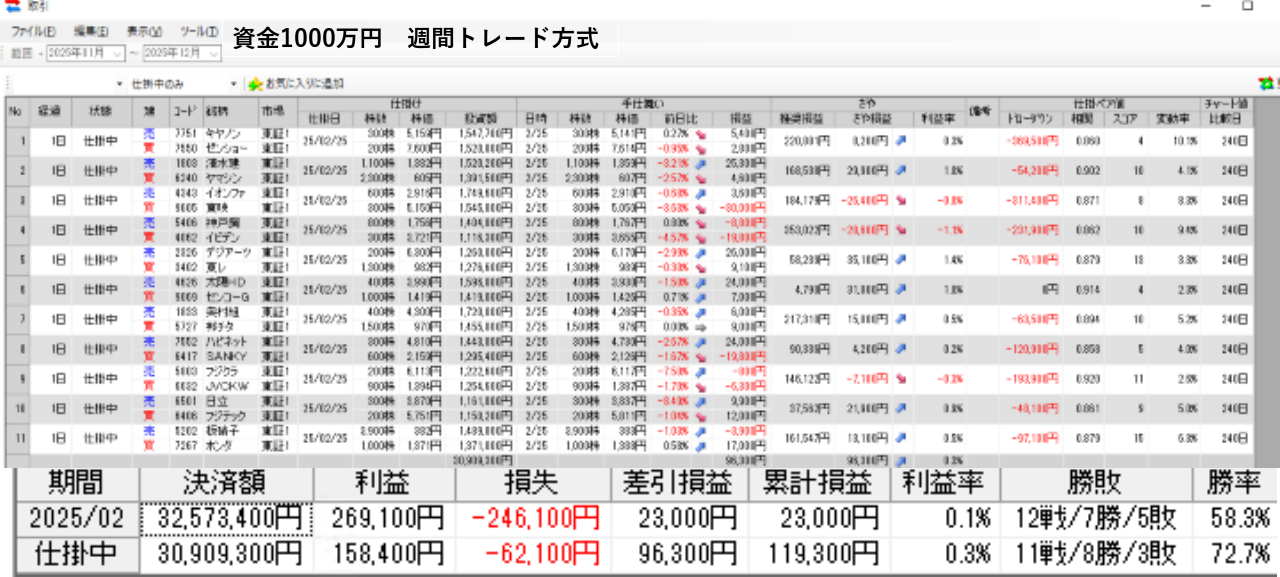 【資金1000万 週間トレードのフォワードテスト】