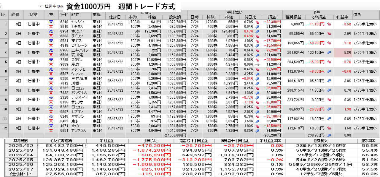 【資金1000万 週間トレードのフォワードテスト】