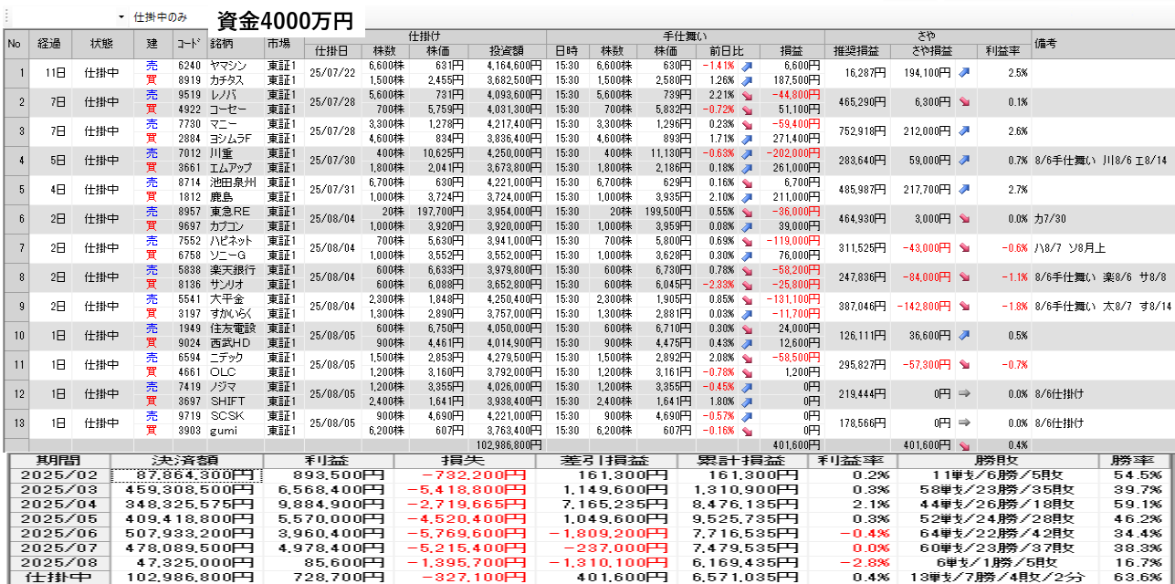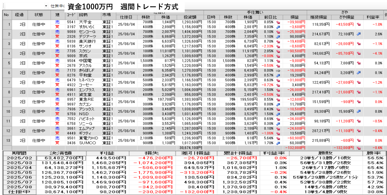 但し、毎日の取引画面は確認して-3%は翌日に損切。
