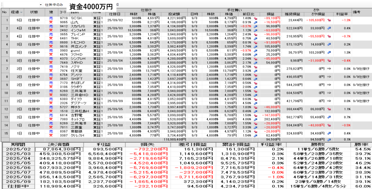 但し、毎日の取引画面は確認して-3%は翌日に損切。