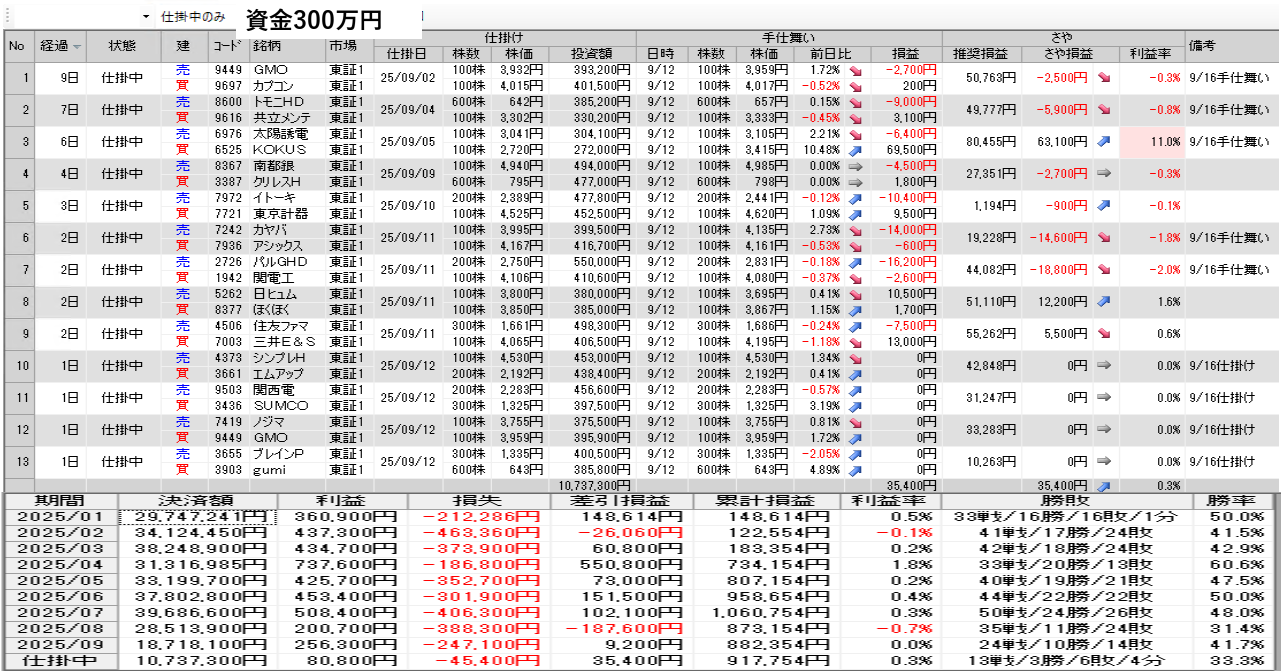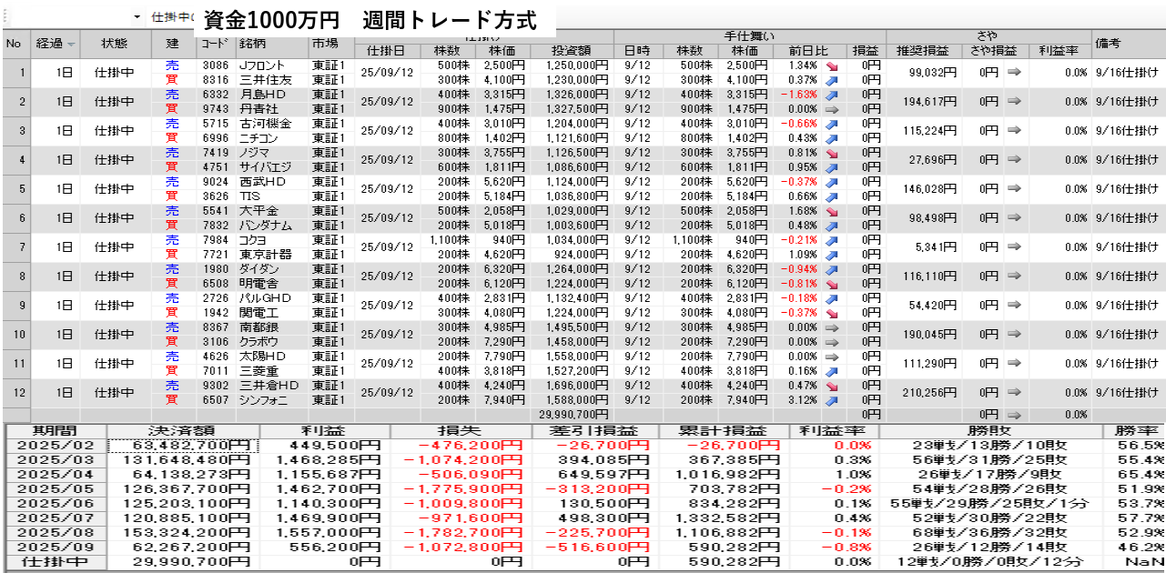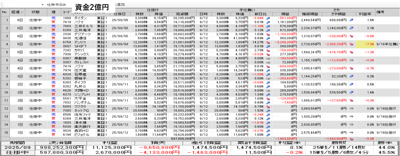 明日の取引銘柄と今日の結果を公開 9月12日