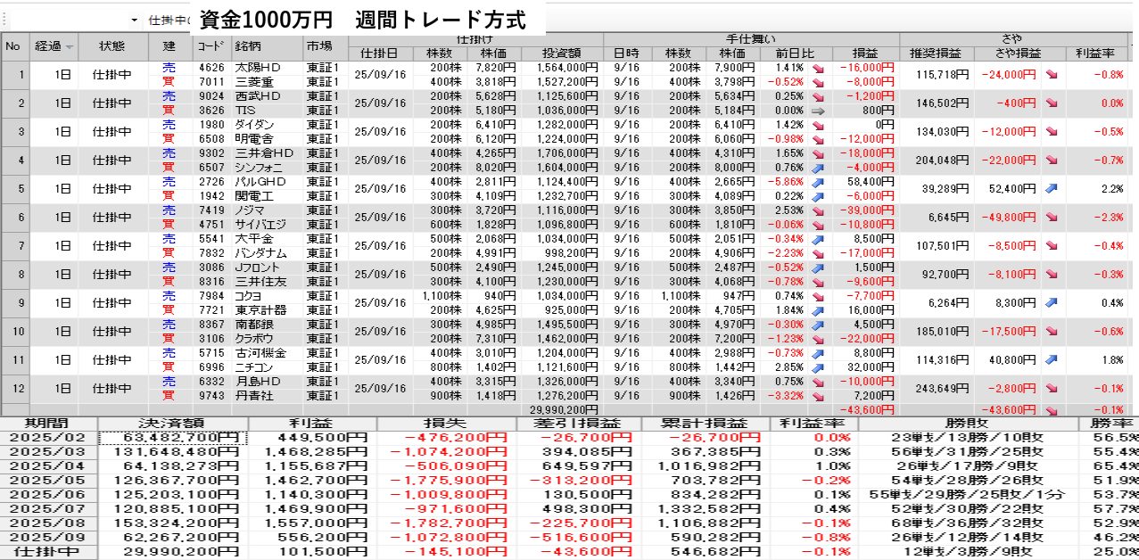 月曜日に仕掛けて、金曜日に手仕舞いする方式。