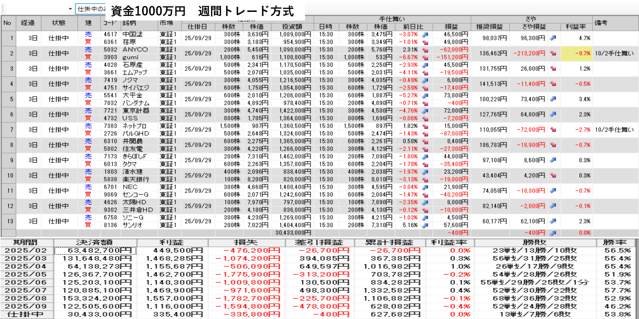 月曜日に仕掛けて、金曜日に手仕舞いする方式。