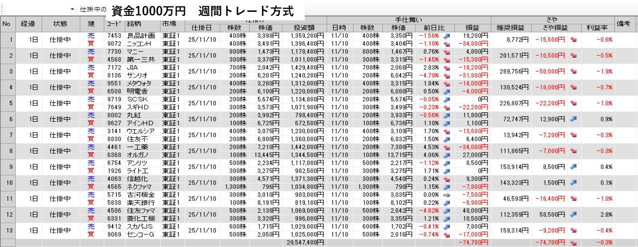 月曜日に仕掛けて、金曜日に手仕舞いする方式。