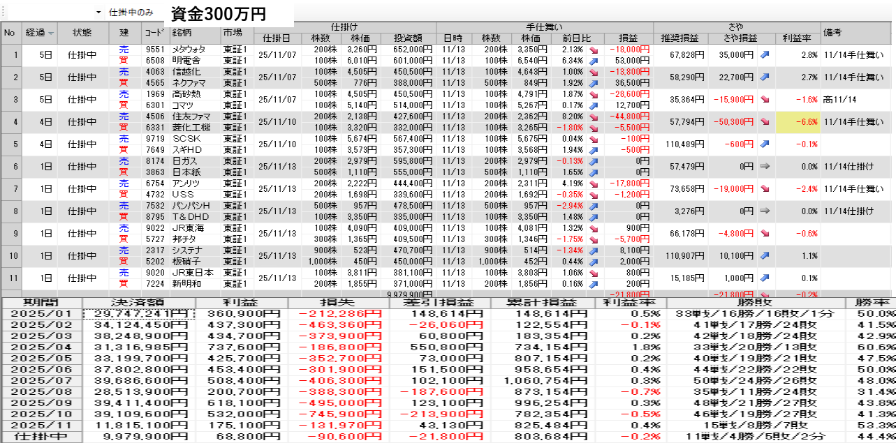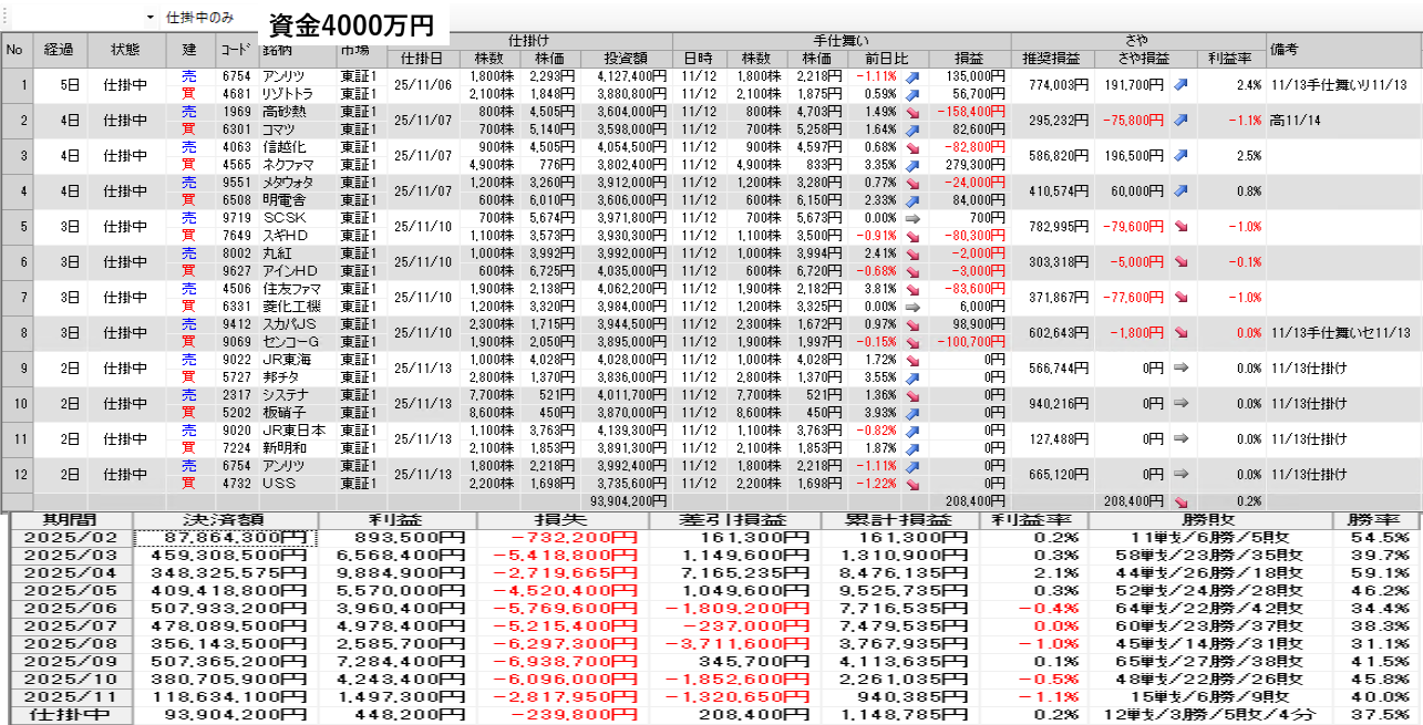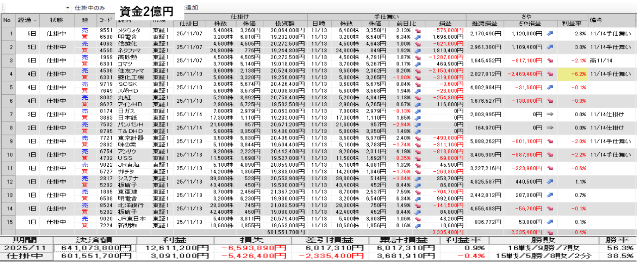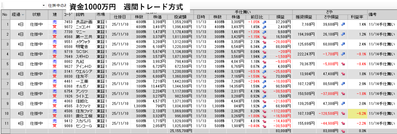 明日の取引銘柄と今日の結果を公開 11月13日