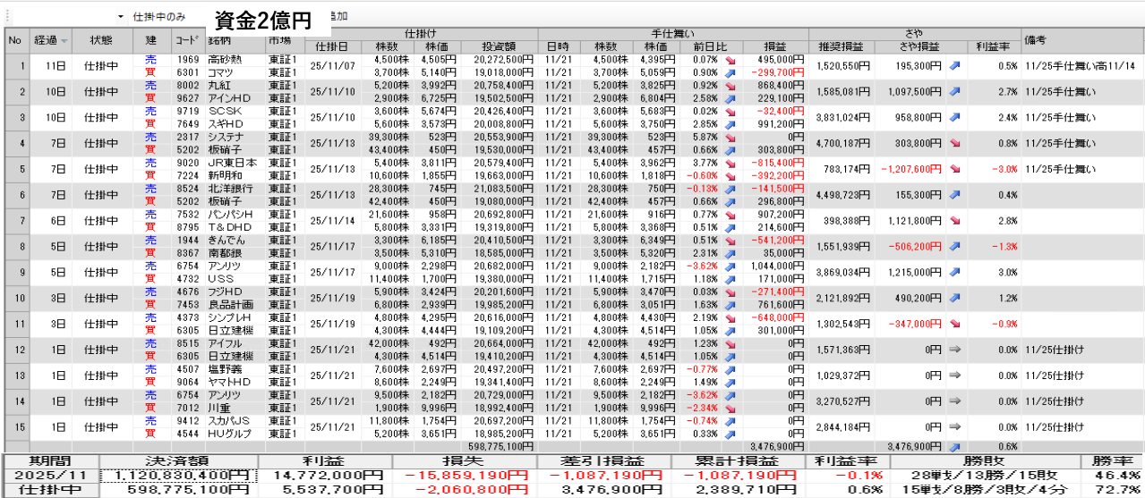 明日の取引銘柄と今日の結果を公開 11月21日