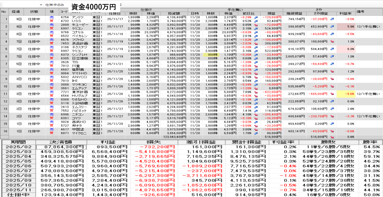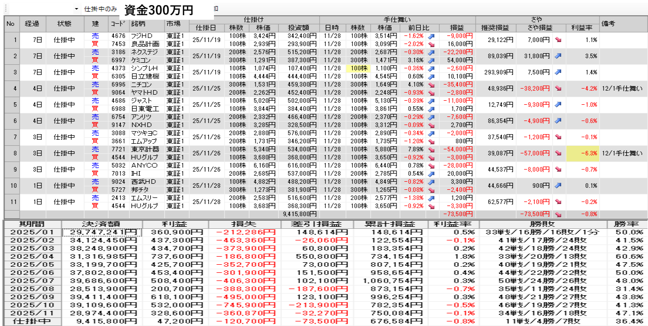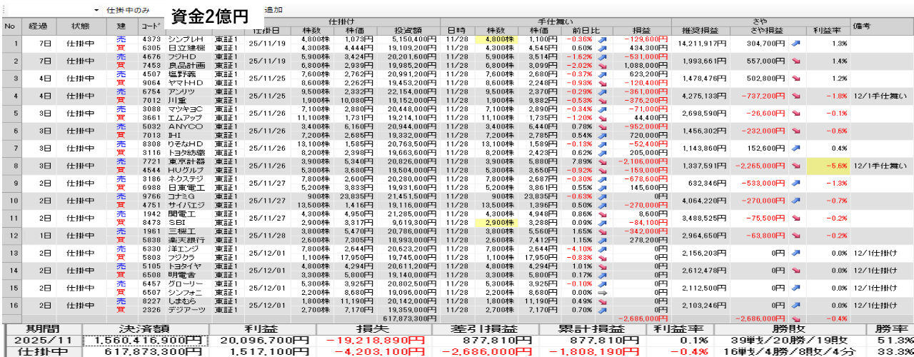 明日の取引銘柄と今日の結果を公開 11月28日