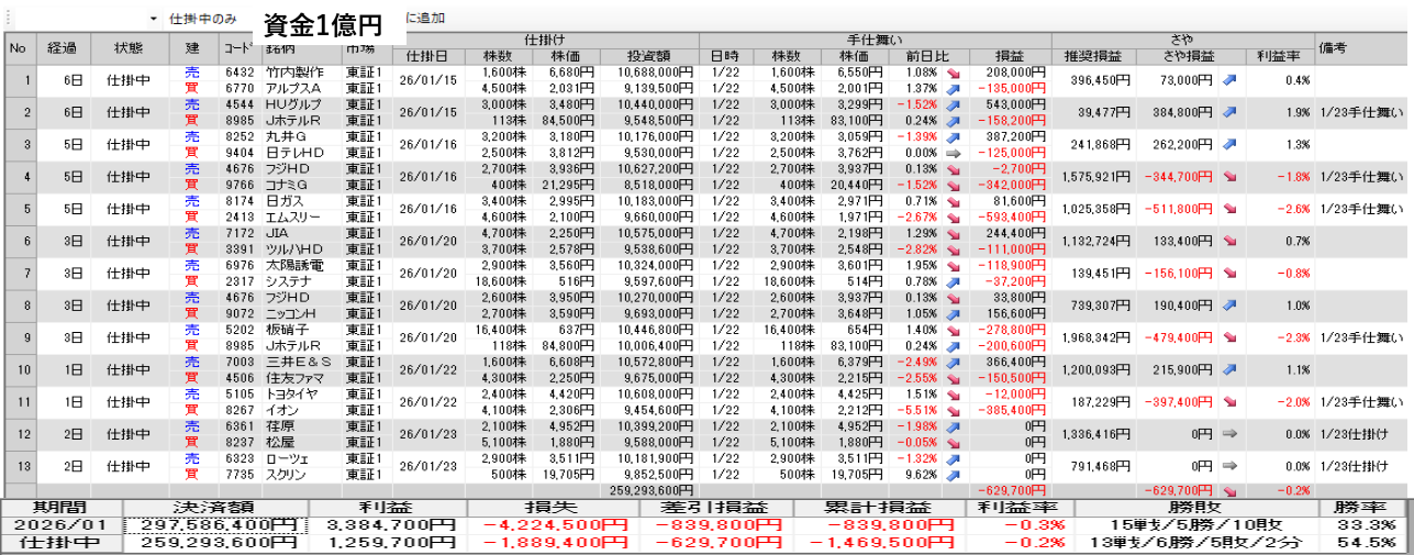 明日の取引銘柄と今日の結果を公開 1月22日