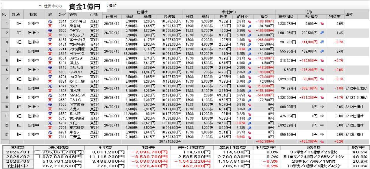 取引の明日の仕掛け手仕舞いは