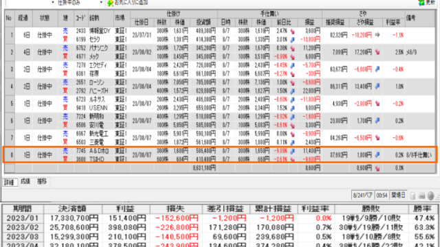 8/2 2ペア手仕舞い2ペア仕掛け