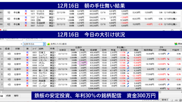 今朝の手仕舞い結果&今日の大引け状況